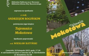 Spotkanie autorskie z Andrzejem Rogińskim, autorem świeżo wydanej książki „Tajemnice Mokotowa” odbędzie się w czwartek, 29 stycznia 2026 o godz. 18.00 w Czytelni Naukowej nr IV…